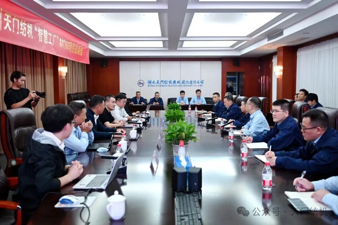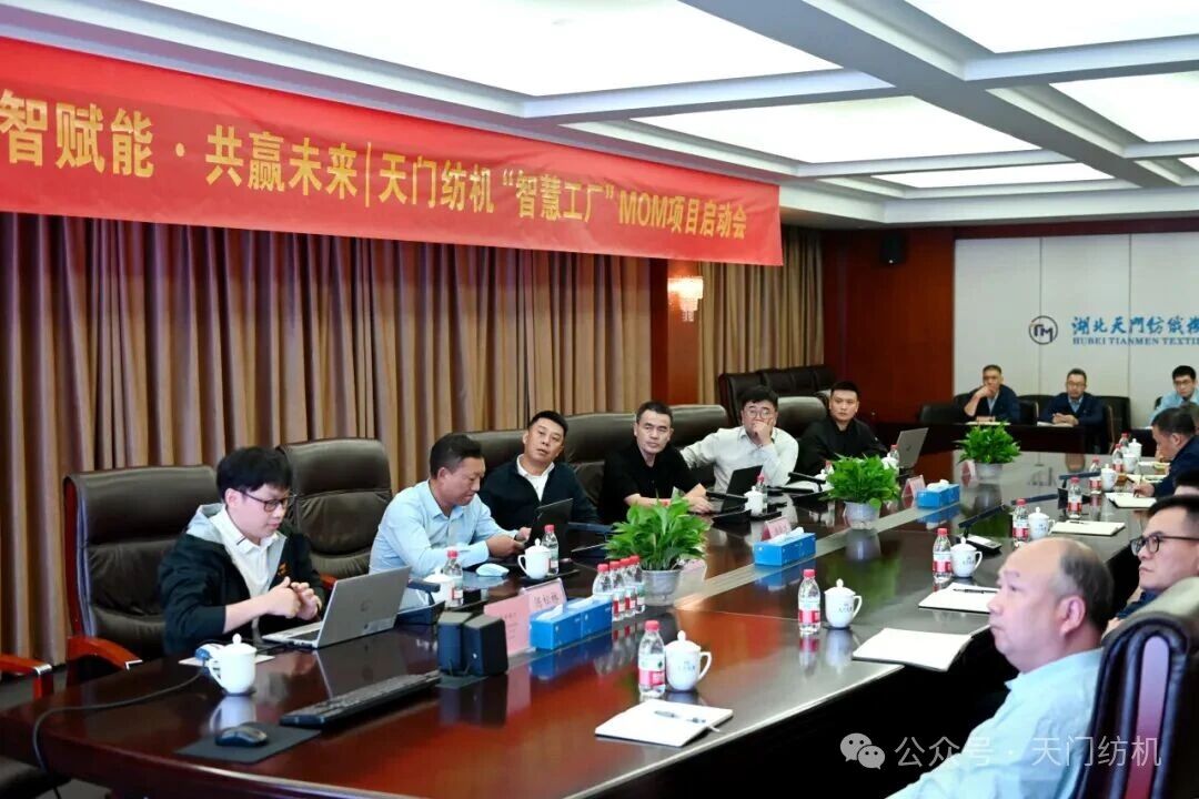 2025年10月15日下午,天門紡機在科技樓五樓會議室召開MOM系統(tǒng)項目啟動會。公司董事長沈方勇、項目合作方廣東盤古信息科技股份有限公司CTO劉鵬、副總經(jīng)理游畢濤及項目相關(guān)負責(zé)人出席會議,公司副總經(jīng)理胡進紅、鄧俊杰,有關(guān)部門、車間負責(zé)人和工作人員參加了會議。
